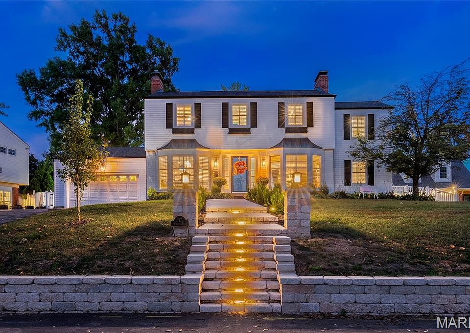 Experience timeless elegance in this exquisite Webster Groves residence, perfectly situated in a coveted Norman Rockwell–inspired neighborhood. A grand first impression begins with stunning curb appeal—new custom walkway, architectural lighting, and lush landscaping on an expansive lot. Inside, sophistication meets comfort with rich hardwood floors, graceful bay windows, plantation shutters, and an open, light-filled layout connecting the dining room, chef’s kitchen, breakfast area. The kitchen dazzles with stainless steel appliances, stone surfaces, and designer finishes, complete with a coffer bar, beverage fridge. Retreat to the luxurious primary suite featuring a spa-like bath and generous walk-in closets. The beautifully finished lower level offers additional living and entertaining space. All within walking distance to charming shops, parks, and award-winning schools—this home defines refined living in the heart of Webster Groves.