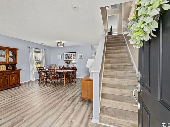 Charming, cozy, and space best describes this 3-bedroom, 2.5-bath 2,308 heated sq. foot (2,669 total sq. ft) home located in the highly desirable subdivision of Bellegrove in Carolina Forest. Located perfectly on a corner lot, the home’s exterior has a perfectly warm welcome as you pull up with textured slate front porch, while its interior has gray distressed luxury vinyl plank hardwood flooring throughout the main floor and fresh paint throughout. The kitchen has impressive white cabinets with upgraded handles, stainless steel appliances, dual stainless steel sink with a window perfectly looking into your backyard, a kitchen table built-in bench and an enlarged 7x5 washer/dryer room just off the kitchen. The living room sits off the kitchen along with the dining room and great room is what you are welcomed to as you walk in the front door. If space is what you want, then space is what you’ll get with the master bedroom measuring in at 19x17. The master bathroom has a dual sink with a classy white vanity top, a glass stand-up shower and a garden tub. The highlight of every bedroom is that all have walk-in closets. Along with the bedrooms upstairs, comes another 18x13 living space that can be used for a tv room, gaming room, or convert to a 4th bedroom. After a long day of work, you can venture outside to your 76x56 (4,256 sq. ft.) fenced-in backyard and have a drink in the warm afternoons on your 31x18 back patio. Other upgrades that add that perfect touch is an In-Ground Sprinkler System and stone landscaping trim. Come indulge your sensuous pleasures with this fantastic home in Bellegrove. Bellegrove amenities include outdoor pool, clubhouse, basketball court and kids playground. Also Bellegrove is situated perfectly on the north end of Carolina Forest giving you mere minutes across the waterway to the beaches as well as all the areas attractions, restaurants, entertainment and shopping that Myrtle Beach holds. Don't let this pass!