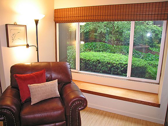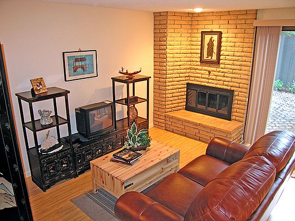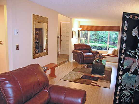 Very private, exceptional, remodeled townhouse in private, quiet setting: bamboo laminate floors, lovely kitchen remodel, stainless appliances, designer window coverings & carpet, private patio with recent pavers, private deck off master, large livingroom with fireplace, window seat, slider to patio in well run HOA built around creek & hiking trails, under 1 mile to Edgewood Shopping Center, parks, schools.