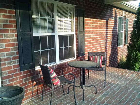 Beautiful brick home, 4 BR 2.5 BA with 2 car garage, mostly finished basement, lower level garage/workshop, 9 ft ceilings, fireplace, private subdivision, covered porch, back patio, some tray ceilings, Hardwoods and some ceramic tile. Front porch has a nice seating area and back patio opens up to a nice wooded area with a small fire pit. Home setting is in the middle of some very nice trees on this 1.22 acre lot.