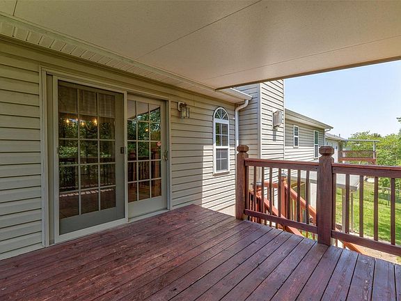 This home is situated on one of the most desirable lots in Williamsburg. Conveniently located near Crystal City Park where you can enjoy swimming, the playground and not to mention summer concerts. Hardwood flooring in the great room along with a gas fireplace. The kitchen includes raised panel cabinets and breakfast bar. The breakfast room offers glass doors leading to covered deck. Luxury primary suite hosts walk-in closet and full bath. The open staircase leads you to the finished lower level showcasing a spacious family room, deal for entertaining, along with a half bath. Still plenty of storage available in the unfinished areas. The walk out basement leads to a covered patio and fenced-in yard. Excellent location! Crystal City Schools. This is a one owner home.