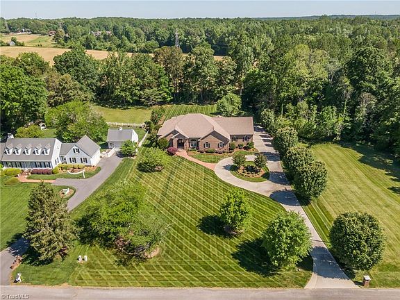 GORGEOUS property now available in Davidson County with plenty of privacy and space! This STUNNING home is centrally located between High Point, Winston-Salem and Greensboro and is neighbors to the beautiful Willow Creek Country Club! Absolute perfect back yard for an entertainers dream or just relaxing by the beautiful stone outdoor fireplace! Large rooms with large closets and multiple living spaces! French doors lead to your extravagant MAIN level primary suite! PLANTATION shutters throughout, circle drive, three car garage, LOW Taxes and NO HOA are just some of the amenities!! Schedule your showing today to see the rest!