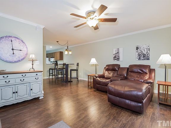 Come see this charming end-unit townhome in Cary! Located within close proximity to The Shoppes at Kildaire and Trader Joes, this 2 bedroom, 1.5 bathroom features; a spacious living room/dining room with new flooring and an updated tile fireplace; a comfortable kitchen with white appliances and access to the shaded back deck. Both upstairs bedrooms, each with ample closet space, share the hallway bathroom. Don't miss the outdoor storage room. Come make this home yours today!