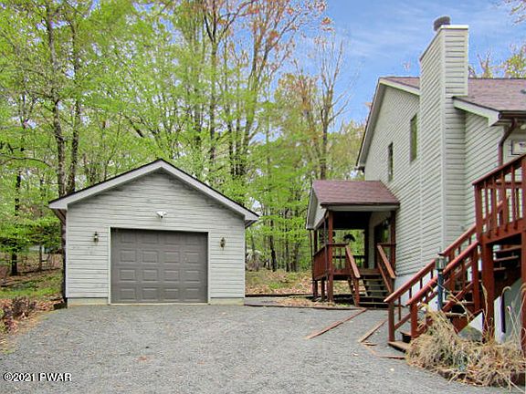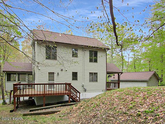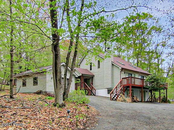 This home has a lot to offer with 2 bedrooms plus a loft, 2 full baths, and a finished lower level with bar, family room and an area for a third sleeping area. The open floor plan features a floor to ceiling real stone wood burning fireplace and large sliders for plenty of natural light. Outside you have a covered deck off one of the bedrooms, a large wrap around deck and an enclosed screened porch to enjoy your morning coffee overlooking your large 1 acre wooded lot. Also has a one care detached garage. The roof and skylights are brand new. The home is located in Tanglwood Lakes, one of the premier communities at Lake Wallenpaupack.