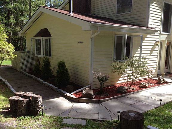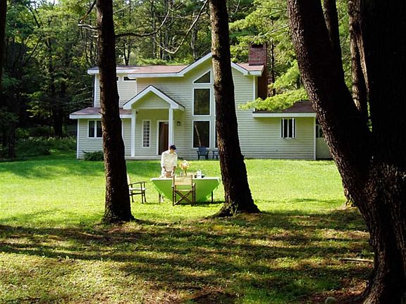 Wonderful, bright, 1,700+ square foot contempo minutes to the village of Woodstock on 2 acres. Set back off the road this 3 BR, 2 Full Bath home is perfect for your summer getaway. Cathedral ceiling LR, Brick FP, dining area for 6, eat-in kitchen- fully equipped, beautiful blue stone patio perfect for BBQ's and evening dining. Master suite on the second floor with private ceramic tile Bath and 1st floor offers 2 bedrooms and full bath.pet allowed