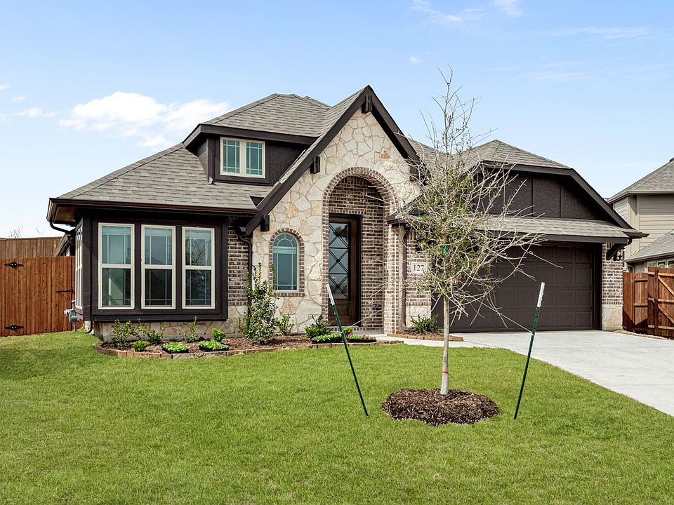 Ready for Move-In! Cypress II plan by Bloomfield Homes is a charming 2-story hosting 4 bdrms, 3 baths, an upstairs Game room retreat, and a Formal Dining Room! Oversized homesite that's almost a quarter-acre- fully landscaped & fenced w sprinkler system! Open-concept layout has gorgeous Laminate Wood flooring in common areas. Upgraded tile & carpet throughout. Kitchen is the centerpiece of the home w large center island, Granite countertops, and Gas SS Appliances including a microwave vented outside! Thoughtful enhancements include Tile Accents at the shower, large Low-E windows strategically placed w 2in Faux Blinds preinstalled, Buffet at Brkfst Nook, separate Laundry room, and a spacious Primary Suite on 1st floor with a sitting area. 2 more bdrms downstairs & 4th Bed upstairs w full bath - perfect guest retreat or flex space! Brick & stone front exterior complemented by an upgraded 8' front door w glass & iron accents, gutters, and exterior lighting. Call Bloomfield today!