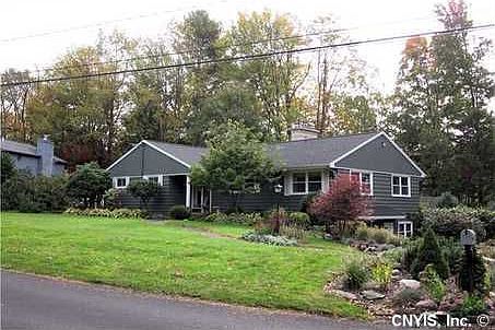 Lovely ranch home on a wooded lot in a great location. Close to schools, shopping (Wegmans etc) Thruway & minutes from Downtown Syracuse. Almost 1 full acre w/fenced yard plus privacy fence for in-ground pool. Extra large kitchen/dining room w/ceramic floor. Gorgeous mahogany hardwood floors in living room. Large 1st fl master BR w/master bath & sliders to deck/patio/in-ground pool. All BR are quite large. 4th BR & 3rd full bath in partially finished walkout basement makes a great in-law or teen suite. 3 wood burning fireplaces, 3 season room, heated garage, oversized driveway & more!