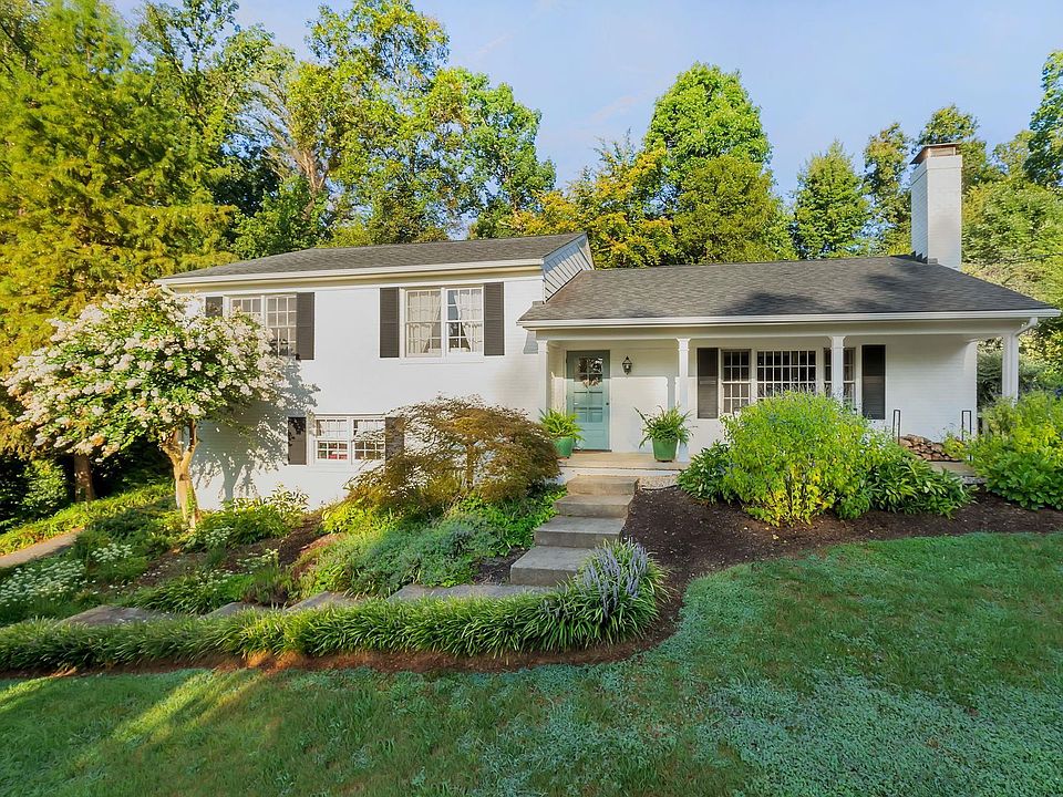 Updated, renovated and in a prime location walking distance to Barracks Road and Stonefield Shopping Centers! Step inside from a rocking chair front porch to a bright living room with picture window and wood burning fireplace flanked with built-ins. Flowing floor plan opens to an eat-in kitchen with breakfast bar. The kitchen is a true chefs delight with gas cooking, double ovens, stainless appliances, beverage cooler and a window over the sink to enjoy the view of professionally designed landscape and a private rear yard. Terrace level bedroom ensuite with walk-in closet and private patio! Custom touches including built-in shelving and a window bench. This space could also be a fabulous home office, rec room or guest space. Renovated tiled bath with heated floor, glass enclosed walk-in shower, separate vanities and linen closet. Laundry room with utility sink and plenty of room for storage could be a workout area or hobby room. Enjoy your morning coffee on the screened porch. Dine alfresco on the flagstone patio and enjoy chilly Fall evenings around the fire pit! Raised garden beds. Storage gardening shed. Playground area and picket fencing. Professionally designed landscape - gorgeous! This one is not to be missed!