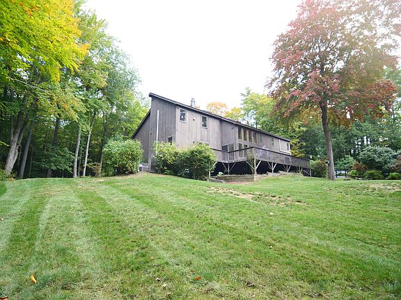 Over 3300 s.f. of incredible living space. This sun drenched contemporary sits on a nice 7.07 acre parcel of land. This striking home sits a couple hundred feet off the road for total privacy. Enter the front door and to your right is a stunning cathedral den with slate fireplace. The custom cherry kitchen is fully outfitted with state-of-the-art viking appliances and granite counters. The kitchen is open to the cathedral dining room featuring built-in buffets and two sliders to the deck and hot tub. Other rooms consists of a massive sunken living room with cathedral ceilings and stone fireplace, family room with wood floors & hearth, full bath, a study with door to the rear deck. The second floor has 5 generous bedrooms, the Main one being a suite with a spectacular bath with a 5 headed custom shower and Kohler jacuzzi soaking tub. All bedrooms have wood floors. The second floor also has another bathroom for the 4 bedrooms. There is an attached 2 car garage, but also a newer detached 2 car garage with an incredible cathedral and heated family room overhead. Special features: 20x40 heated inground pool, alarm system, central air conditioning, hot tub, 2 fireplaces, generator hook-up, total privacy and total quality.