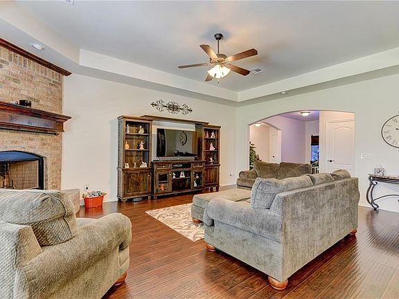 This wonderful home sits in a quiet cul-de-sac in Highland Trails and features a Large Family Room with a fireplace at its center, Tall Ceilings and Large Windows for natural Light. The Kitchen has a large Island with a breakfast bar, Granite counters, SS appliances, (Including a Refrigerator that stays). Just off the kitchen is a large eat in area. The master suite features a walk in closet, Tall ceilings, a bath with a corner whirlpool tub, double vanities, a separate walk in shower. The game room could be a 5th bedroom and is large enough for a media room. The three beds on the other side of the house share the 2nd full bath and there is a 1/2 bath for your guests by the Game room. This is an oversized lot and extends beyond the fence to the east.