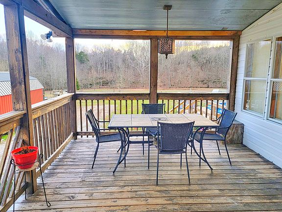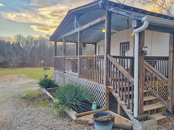 Welcome to your new private paradise! This 5 acre, mostly flat land with creek running through rear of property is perfect for a mini farm or whatever your dreams may be. It is already set with chicken coop as well as goat pen. Enjoy the privacy in your above ground pool with wrap around deck, not to mention the separate covered deck that is perfect for entertaining. Inside you will find a spacious living room, with built in electric fireplace, kitchen with lots of storage space and 3 ovens. Master bath has been updated to a whirlpool tub with separate tile shower. Two large sheds, one set as a one car garage complete with garage door, and a large carport are ready for any vehicle or hobby. This home is move in ready or build a new one on the gorgeous land. Take a look today!
