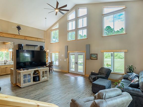Custom home built in 2022 on five private acres in the Circle Bay area of Longs with no HOA. Built with 2x6 exterior walls, R-23 insulation, and an R-45 insulated attic with a metal roof and solid roof sheathing for strength and efficiency. Cathedral ceilings and a loft create an open, spacious interior accented by solid knotty pine doors. The detached three-car garage provides ample storage and workspace. Property offers flexibility for future additions, a pool, or expanded outdoor living. Located south of Hwy 9, minutes from shopping, dining, and the beaches of North Myrtle Beach.