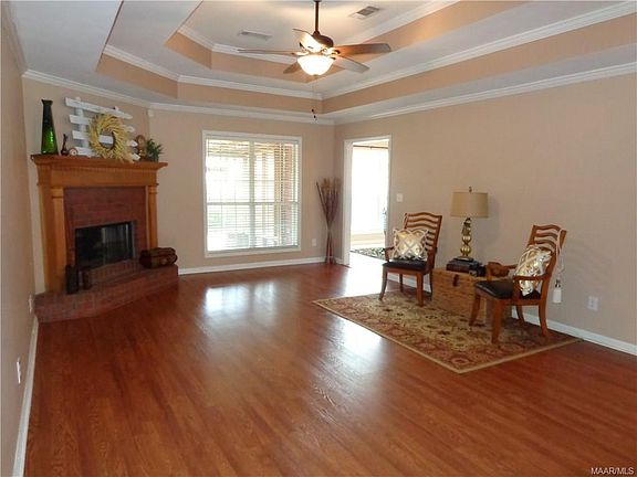 This functional split bedroom floor plan features 4 bedrooms, 3 full baths, a large family room with fireplace, a formal dining room, a breakfast room, hardwood flooring, and so much more. There is plenty of room in the eat-in-kitchen with updated stainless appliances, granite countertops with tumbled marble backsplash, a cabinet pantry, a breakfast bar, and abundance of cabinets for storage. The master suite boasts a spacious bedroom, a walk-in closet, a garden tub, a separate shower, a linen cabinet, and double sink vanity. The second full bath features a double sink vanity and a linen closet, and the third full bath sits in the upstairs spacious fourth bedroom. The backyard is completely fenced by a privacy fence, and there is a screened porch to relax on, an additional patio for grilling, a workshop/storage building, a 2 space garage, and a covered front porch. Kings Forest is a great neighborhood that is tucked away, but just a few minutes from all the city busyness. You can easily walk to Prattville High School and the Upper Kingston Park with walking trails and soccer fields. Please come and visit this spacious home today to discover even more great things about this well loved home...