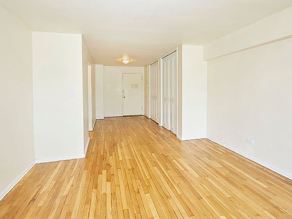 Boasting spectacular skyline views and approximately 955 square feet of perfectly configured living space. Unit #4U is without question the premier residence in Kings Village. A proper foyer flows into a flexible living space, generous enough to fit a full living room setup and a dining table. The spacious eat-in kitchen has stainless steel appliances and a modern feel. The king-sized primary bedroom is large enough has plenty of closet space, and the second bedroom can accommodate a queen bed.