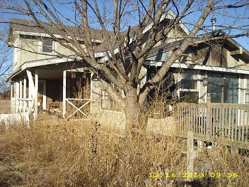 Property sold "AS IS" and "WHERE IS" with no warranties expressed or implied. Pre-approval letter must accompany all offers. $1000 earnest money. Home is situated on 4 acres. Two bedrooms upstairs, bath & another bedroom on the main level. Wood deck on side & front of home. Acess to property is easiest from 10th Ave. in Belle Plaine.