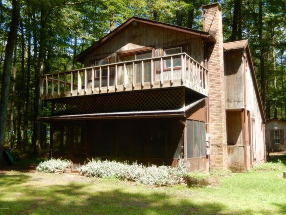 • Features: Lot Size/Under 1/2 Acre, Sewer/Septic, Area Description/Country Living, Bath Features/Stall Shower, Area Description/Fishing, Area Amenities/Area Fishing, Flooring/Mixed, Exterior/Storage Shed, Exterior Living Space/Balcony / Lanai, Water/Well, Garage Count/1 Car Garage, Kitchen Features/Eat-in Kitchen, Lot Description/Wooded, Age/41-50 Years Old, Road Type/County Street, Special Market/Vacation / Second Home, Area Amenities/Area Hunting, Area Description/Hunting, General/Workshop, Exterior/Storm door, Views/Lake & Stream, Cooling/No A/C, Area Description/Flood Area, Lot Description/Stream on Lot