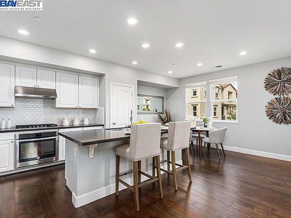 Premium corner lot with stunning panoramic views of the rolling hills and the community park! Great views through every window and great location next to the community park! This highly upgraded modern home features an open concept floor plan with abundant natural light throughout! Upgraded kitchen with large island, quartz countertops, decorative backsplash, stainless steel appliances including gas stove, oven, dishwasher, recessed lights, white modern cabinetry, and many more. Spacious living and dining area and a half bathroom on the main floor! A large balcony with stunning views of rolling hills and park! Engineering hardwood flooring throughout with upgraded carpet on stairs. Third floor features a spacious primary bedroom with a magnificent view and walk-in closet and two additional rooms for an office or extra bedroom! Primary bathroom features dual vanity with quartz countertops and luxury tile flooring plus shower stall. Additional full bathroom with bathtub on the third floor. Convenient two-car side by side garage. Tankless water heater and dual zone heating and air. Conveniently located near ACE train, 580 freeway and parks. Move in ready! A Must See! Open House Sat/Sun(2/25-2/26) 1 to 4 pm.