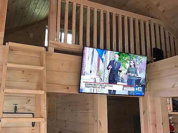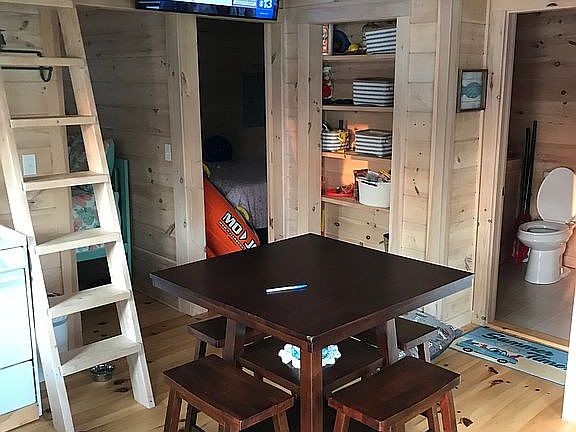 Waterfront Camp with two bedrooms and a loft area for kids and kitchen living room with full bathroom. Deck with great views of China lake and a dock for your boat and nice swimming area with dock.