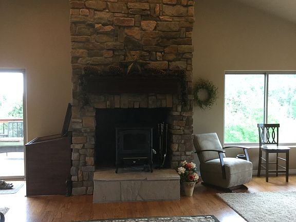 - Fireplace features: wood stove