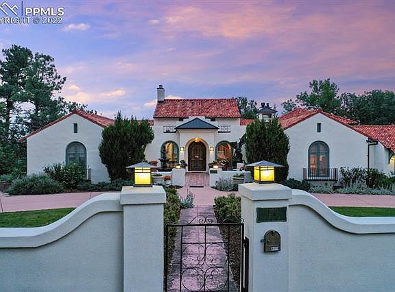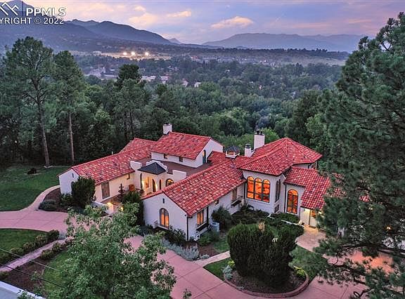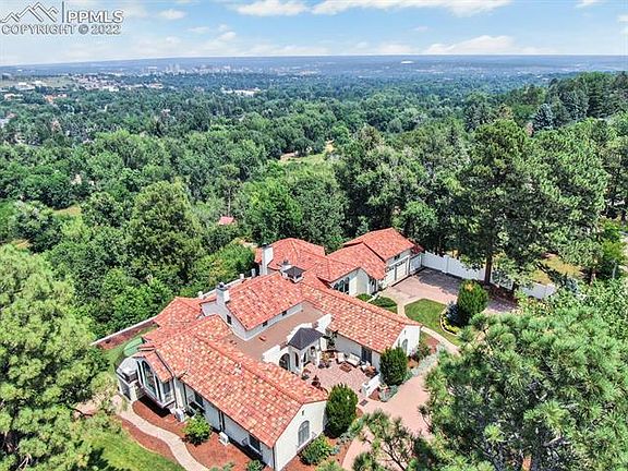 Spectacular Mountain Views, City Views, Downtown Views, & Garden of the Gods Views from this beautiful Broadmoor home! Experience the best of the Old Broadmoor area! Beauty & tranquility await with property adjacent to 4.38 acres of protected land with a creek. Within walking distance to the world renown Broadmoor Hotel & Resort! The original house was built in 1923 & was influenced by Santa Barbara style villas with original Heinze clay roof tiles & stucco. The front mission stucco wall along the street frames a circular drive & leads to the courtyard heated flooring arched windows French doors three-tiered water fountain.The original custom arched front door welcomes you to the oversized foyer & leads to the heart of the house with formal dining, kitchen & den adjacent to each other.Kitchen has a commercial Thermador gas range a double oven, with grill & heat lamps subzero. Perfect for indoor outdoor entertaining the large balcony offers sweeping views. Master bedroom has a separate private balcony adjacent to the main balcony with the same irreplaceable views. Master bedroom has original art deco tile floor and Batchelder style fireplace. Master bath is adjacent to a 16 x 17 walk in closet with built ins & washer dyer hookup. East wing of the house has a large bedroom upstairs. West wing has another oversized bedroom perfect for those desiring privacy. Basement has views & flows well to the main level den for large parties & has large sliding glass doors to access the putting green & back yard. The laundry room is big enough to add a potential kitchenette & the large workout room with exposed brick has a separate entrance & could be converted to a third den or additional bedrooms. Next to the wine locker the bathroom has a dressing area & a steam shower. If you are looking for some of the best Colorado views & the amenities of three country clubs, downtown shopping, entertainment, & dining this is a must see. See 2 Video Tours~