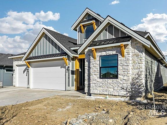 Beautiful newly built custom home by Greystone Homes in Eagle's premier Legacy subdivision! Elegant Main floor primary suite has a freestanding soaker tub, full tile walk-in shower, dual vanities with softly backlit mirrors, and a walk-in closet with its own W/D included + full length mirror. Split bedroom floor plan has two more spacious bedrooms and a second full bath + half bath on the main level. Custom soft-close cabinets throughout, Quartz center island and countertops, a huge walk-in pantry, and upgraded appliances including a 36" Thor oven/range. Spacious Great Room with stunning floor-to-ceiling stone fireplace w/ floating shelves on either side and custom lighting. Large bonus room or 4th bedroom upstairs w/ full bath and a private walk-out deck offering picturesque views below. Enjoy multiple lakes and water features, miles of walking paths, community pools, tennis courts, lavish landscaping and a 26-acre 3 Hole executive Golf Course. Close to entertainment, dining, and shopping. Move-in ready!
