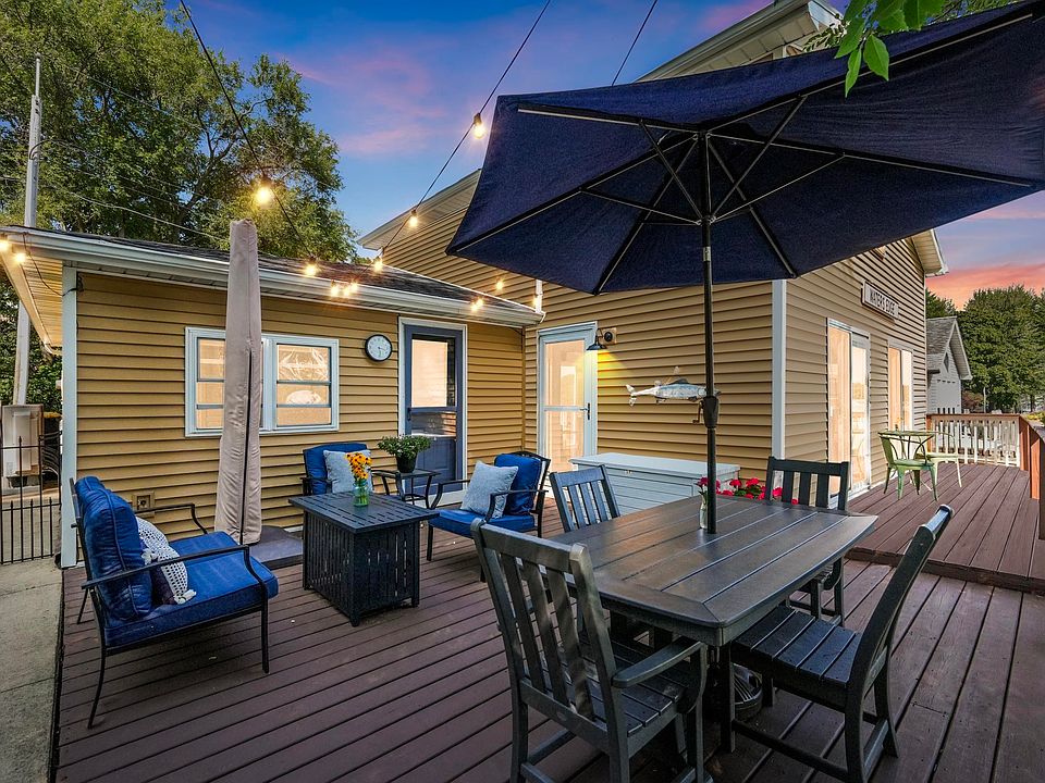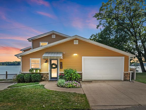 Welcome to “The Waters Edge.” Named by the sellers, this south-facing Sylvan Lakefront retreat delivers 68 feet of linear concrete seawall, three tiers of lakeside entertaining, and a rare front-row seat to autumn color across the undeveloped shoreline directly ahead. Most mornings in peak season you can sip coffee while watching the ski-course shows and then step down to your firm, gravel-bottom swim area for a dip. Inside, nearly everything shines: an updated kitchen with quartz counters and soft-close cabinetry, stainless appliances, and generous pantry; light-filled living and dining that spill onto expansive decks; and a main-level primary with en-suite access to a shared guest bath. Upstairs, two guest bedrooms plus a flex/pass-through 4th bedroom accommodate a crowd. Convenience with personality on the main-level laundry, 200-amp service, newer roof/siding/windows, and four high-efficiency mini-splits (one in each bedroom and one in the living room) for precise year-round comfort. Outdoors, the magic happens: a wide lakeside upper level deck atop the seawall (great for extra seating), multi-level decks that capture all-day sun and evening glow, and quick access to the pier. This property is offered mostly turnkey most larger furnishings will convey at no additional cost or value and without warranty (personal/sentimental items excluded). Boats, trailers, and lifts are available to purchase separately. Welcome to effortless lake life on 669-acre, all-sports Sylvan Lake just minutes to parks, dining, the Gene Stratton-Porter Historic Site, farmers markets, Sylvan Cellars, Doc's Landing and year-round recreation requiring very little maintenance .