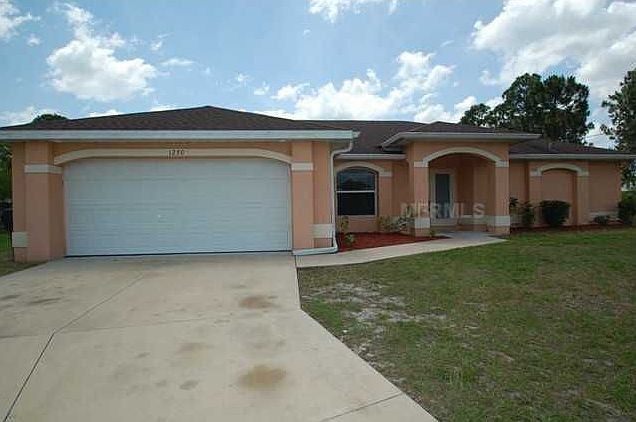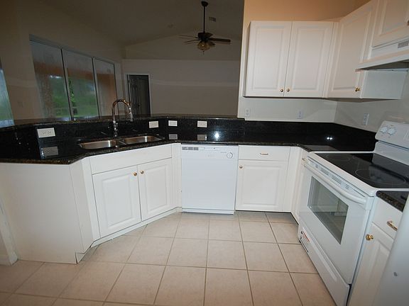FABULOUS 3/2/2 home built in 2005! This lovely home is situated on a quiet cul-de-sac with over-sized lot. The home features a large open floor plan with vaulted ceilings, 2 bedrooms on one side, master suite on the other, plus office/den/4th bedroom. This home is perfect for the growing family. 16 inch tile throughout main living area, freshly painted, granite, new kitchen appliances, brand new carpet in bedrooms, and new hot water heater. Extra large lanai with 3 sets of sliders going out, even extra space for a pool. This home will not last long!!