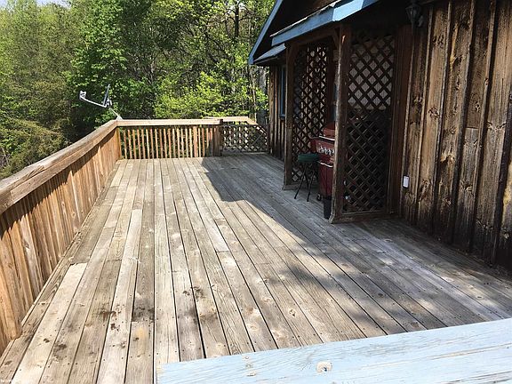 These homes are located close to the mountains of the Blue Ridge. It is a beautiful, secluded, and peaceful place with wonderful neighbors. The home has two residences, ten acres, fruit trees, grape vine, a garden space, storage shed w/two carports and a lovely creek. The main house has 1600 sq.ft., 3 bedrooms, 2 baths, combined living room with eating area, and unique kitchen. A vaulted ceiling highlights the family/sitting room along with the natural lighting from the windows and sliding glass door that opens onto the wrap around deck with a great view. The basement bedroom has french doors that open onto a small patio. The guest cottage has 600 sq.ft. with a full kitchen, bath, and large bedroom, combined eating and living area with skylights and ceiling fans. Deer and turkey are plentiful for hunting, and the creek is stocked with trout for fishing. There is a large flower garden with a birdbath near the house. Enjoy trails, fire pit, and cleared areas near the creek.