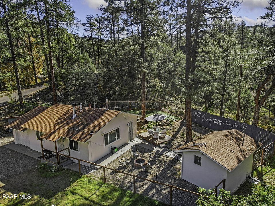 Welcome to this delightful home in the desirable Sweet Acres subdivision, where comfort and convenience meet! This well-maintained 2-bedroom, 1-bath home offers a warm and inviting atmosphere with large bedrooms and plenty of natural light throughout.Relax in the spacious living area featuring a cozy wood-burning fireplace perfect for Prescott's cool evenings or stay comfortable year-round with a newer mini-split system for efficient heating and cooling.Enjoy the fenced backyard, ideal for pets, gardening, or outdoor gatherings, shaded by mature trees that provide both privacy and charm. The property also includes a 1-car garage and a large storage shed, giving you ample space for tools, hobbies, or extra storage.Nestled in a quiet neighborhood, this home offers peaceful living while being just minutes from downtown Prescott, shopping, dining, and local amenities.Whether you're looking for your first home, a weekend getaway, or a low-maintenance investment, this Sweet Acres gem is a must-see!