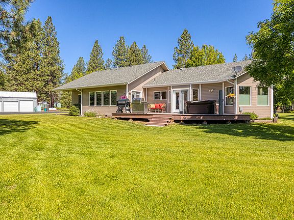 Beautiful custom home on 3 level, and manicured acres. Huge kitchen with solid surface countertops and updated stainless steel appliances. The living room boasts stunning wood floors, a vaulted wood ceiling and has a pellet stove for cozy nights. The main bedroom has a big en-suite bath with a soaking tub and a big walk in closet. The deck off of the kitchen boasts a serene view of the backyard with a hot-tub. The attached garage is oversized and will fit two cars/trucks comfortably. Detached insulated & heated (pellet and propane) 4-Bay shop that comes with an air compressor, plus a 45' X 24' fully insulated RV barn with one roll-up door that is 12' X 14' and a 2nd roll-up door that is 12' X 12' with an additional air compressor and a car lift. Heat pump for the main house both heat and air. Newer roof 6-7 yrs. In ground sprinklers for both the front and back areas. Such an stunning property with amazing amenities only 25 minutes from Klamath Falls. Generator included.