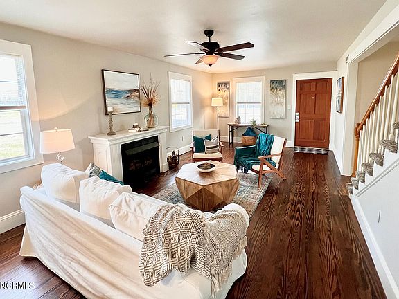 This Darling home is located on 1.43 acres. The interior of the home has been opened up to have a more open and spacious floor plan. New flooring throughout most of the home. The hardwood floors in the living room were refinished over a year ago. Hardwoods and laminate cover the floors as well as some carpeting in bedrooms. The Master bedroom has its own bathroom and another main bathroom on the first floor. Two bedrooms and half bath upstairs. Large, screened porch off of the kitchen/dining area. Deck off-screen porch and a playset in the backyard. The home has a lot of storage indoors and out including a shed and a large 30 x 40 metal shop that sits on the property as well. The workshop is a dream for anyone who loves tinkering on cars, woodworking, etc. The refrigerator, dishwasher, washer, and dryer will all convey!