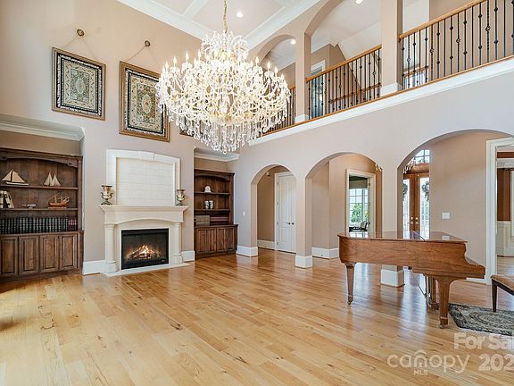 Stunning estate w/ 6 acres nestled in the prestigious gated community of Teeter Farms Estates in Mooresville. This magnificent home offers over 7,000 square feet with main level primary & 2nd living quarters in the expansive basement. 2 story great room overlooks the private and lush backyard. All en-suite bedrooms with walk-in closets. Upstairs are 3 bedrooms, bonus room and a laundry room. On the main level you will find an office, formal dining and living rooms, and an amazing kitchen with breakfast area and keeping room with fireplace and vaulted ceiling. Kitchen also features an impressive island, walk-in pantry and all Viking appliances. The basement is perfect for entertaining on a more casual level with a fireplace in the family room, a full kitchen with pantry, potential wine room, breakfast area and keeping room with fireplace. There is also a future movie room or use as a hobby room, garage & screened porch. This home is not to be missed! 6 acres consists of 2 lots