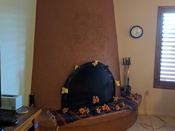 Come inside to find a well-appointed, recently renovated Kitchen with warm granite counters, undermount sink and black appliances. ''Old Mexico'' will come to mind when you see the vibrant ''Kahlo'' accent wall colors, the Talavera style electrical outlet/switch covers, and the custom Wood-framed bath mirrors complemented by Hammered Copper vanity sinks. The Great room features a Rust colored Kiva fireplace with custom screen and a seat hearth. Throughout you'll find easy care ceramic tile flooring, Wood plantation shutters over dual-pane windows with custom screens. Designer ceiling fans give added cooling comfort at great room and bedrooms; and skylights brighten the Kitchen.