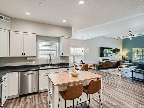 Welcome to 1270 W Quincy Circle: a beautiful move-in ready SFH in Englewood. This property has been meticulously maintained with 3beds, 3baths, a large private yard & an attached 3 car tandem garage—incredibly rare in this neighborhood. From the moment you step inside, you're greeted by upgraded Luxury Vinyl Plank flooring that flows throughout the entire main level & the 96” diameter statement ceiling fan in the vaulted great room that is sure to wow. Embrace the open layout featuring a spacious great room, dining area, well-appointed kitchen including upgraded stainless steel appliances, a brand new workstation Kohler sink & faucet along with a pantry. Convenient 1/2 bath with Quartz countertops can be found in the powder room between the kitchen & the owners entry to the garage. Upstairs you will find the spacious primary suite with luxurious 4 piece ensuite bathroom with a frameless barn sliding glass shower door, built in speaker light, black metal accents, dual sinks & large walk-in closet. 2 additional bedrooms with a full bath & the laundry room with great storage shelving & Samsung smart steam washer & dryer with a built in sink feature. Brand new carpet throughout entire upper floor & updated light fixtures with LED lights throughout the entire home. Sliding glass doors off of the dining room lead you outside to a private oasis featuring a large extended backyard patio with stamped concrete accents & perimeter 6ft fence with solar accent lighting & storage shed tucked away. This space is perfect for entertaining friends & family or unwinding at your leisure. 3 car tandem painted garage is complete with epoxy floor along with built in storage. Conveniently located near coffee shops, restaurants & shopping areas. One block from Jason Park. Quick access to Downtown Littleton, Cherry Hills Village, South Broadway & 15 minutes from Downtown Denver. This is the home you’ve been waiting for. Don't miss this opportunity-schedule a showing today!