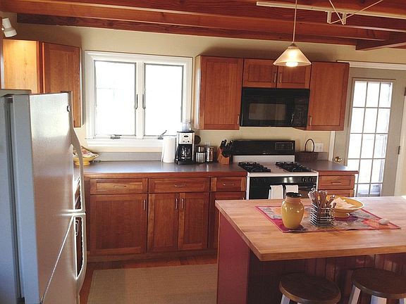This cozy Cape with unique Nantucket dormers is nestled behind mature plantings on 1.2 acres. Well built in 1999 with 3 bedrooms and 2 baths on the corner of West Side Road and Grace's Cove, this is a perfect spot for a family. Hardwood floors, cherry cabinets and a nice yard make this home bright and cheerful. Oil fired hot water heat is supplemented by a cozy wood stove. Strong rental history.