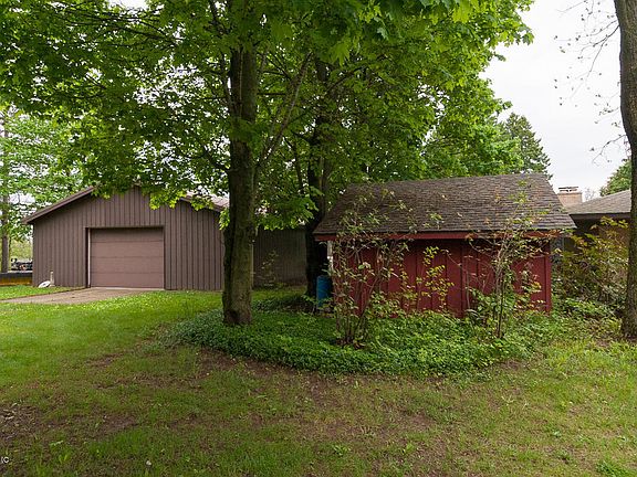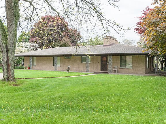 Sky Hawk Lake with 283' of frontage. This is a custom built, builders home and is an all brick ranch with a detached 3 stall garage that has an attached 912 sqft 2br, 1bath apartment. This home has a classic custom look and feel to the exterior with a hint of mid century modern styling on the interior. Highlights include granite window sills, slate entry way floor, custom kitchen, zone heating, main floor laundry room and lots of built ins. Trees on the property include 14 English & Carpathian W alnut trees, 4 Pecan, 7 Chestnut, a Hazelnut, Dawn Redwood, Gingko Biloba, Kousa Dogwood and more. Also included is a 12'x15' shed and 30'x52' insulated pole barn w/ electric. This 15 acre property is made up of 2 parcels, a 10 acre with the buildings and a build-able 5 acre with the lake frontage.