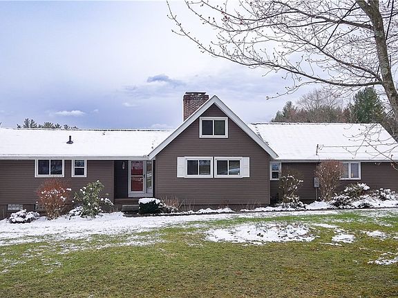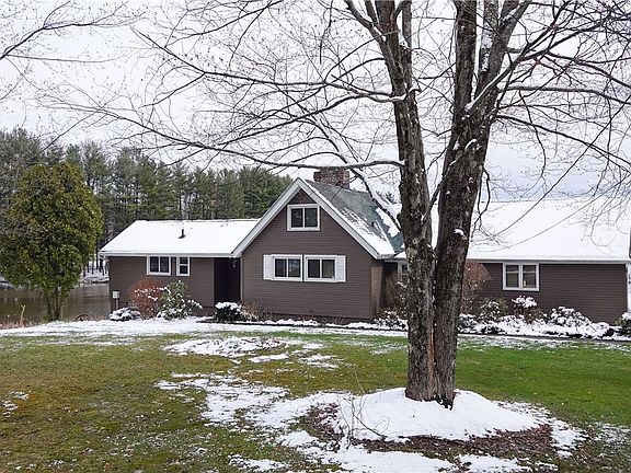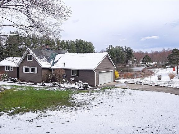You won’t find a view like this anywhere else! This home is nestled on its own private oasis, with a beautiful pond and over 7.5 acres. All the big ticket items are already updated including the windows, boiler, well, and septic!! This ranch with a walkout basement is just waiting for your personal touch! Off the two car attached garage enter into the large mudroom with first floor washer and dryer. Eat-in kitchen with large cooking island. Original hardwood floors in exquisite condition throughout the main living space and upstairs bedrooms. Full bathroom with double vanity. One of a kind living room with an impressive ceiling to floor brick fireplace, vaulted shiplap ceilings, and a walk out to the wrap around deck overlooking the water. Downstairs find another entire living space with a kitchenette, two bedrooms, full bath, and a family room with double sliding doors that walk out to a patio overlooking the water. You will also find ample storage and a workshop in the spacious finished basement area. Outside there is a 30X30 outbuilding equipped with electricity. The possibilities are endless! Don’t miss your chance to make this beauty yours today!!