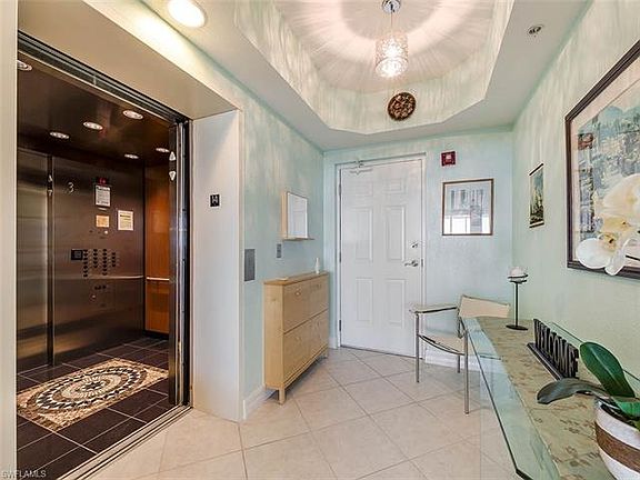 Calming describes this corner sky-home. An elevator lifts you to a private foyer leading to a spacious, bright great rm w/wall of glass & solar shades. A 400+ sq ft outdoor living space allows more entertainment options.Breathtaking describes the view-crystal clear lake, acres of preserve & sparkling waters of the Gulf & Bay.2426 sq ft of interior space includes: living/dining area; kit. w/solid surface, island & bar w/granite, eat-in area w/lots of light. Master BDRM w/wood floors, access to lanai & panoramic views. Master BA w/2 windows letting in sunlight, 2 vanities, walk-in shower w/ handheld shower head, soaking tub & water closet w/beadboard. Huge Master Closet! Private en-suite for guests. 3rd BDRM/Office has custom built-ins including desk w/granite top, extra storage & Murphy BD. A 3rd BA adjacent to Office. Laundry w/deep sink.Crown molding in every rm. Upgraded lighting throughout. Under the BLDG, enclosed 2-car garage w/ epoxy floor. 5-Star amenities. PRIME location.