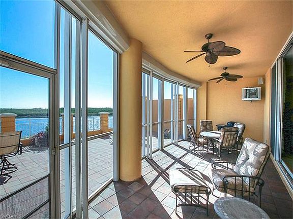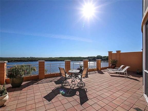 WOW! An inverted penthouse! UPGRADED THROUGHOUT & ATTENTION TO EVERY DETAIL. Private elevator foyer from secured elevator. Over 2426 sq ft w/ volume 12', tray ceilings & double crown molding' Spacious living/dining area. Approx.1800 sq ft outdoor entertaining terrace- partially screened w/ tv & electric hurricane shutters - overlooking 25-acre lake. Completely upgraded kitchen w/ all wood cabinets, SS appliances, island w/ built-in wine ref., granite, breakfast bar, & eat-in area. 2-En-suite BDRMS. Master suite w/generous walk-in closet & customized BA-huge walk-in shower, spa tub w/ window, double sinks w/ marble tops, wood cabinets, linen closet, upgraded tile - your personal spa. Bright & private guest en-suite.Office w/ engineered wood floor. Adjacent 3rd BA. Laundry w/ wood cabinets, sink & Corian. Enormous 2+ garage w/ epoxy floor & storage. Surround sound, upgraded lighting fixtures, insulated a/c closet, beautifully turn-key furnished. BRAND NEW RHEEM 14 SEER SPLIT A/C System as of 05.04.17. Service contract for all appliances paid through April if 2018.