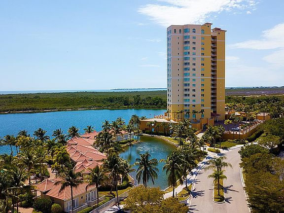 This lakefront, corner condo has been meticulously maintained & lightly used by original owners. Arrive by secured elevator opening into a private foyer. A double door entry leads into a sun-filled great rm w/ floor to ceiling sliders/windows showcasing the shimmering lake views. Acres of preserve, Bay & Gulf serve as a backdrop to the lake. Views can be further experienced from 1 of 2 lanais. The KIT w/white cabinets & granite is open to the living/dining space allowing the host/hostess to feel included in gatherings. A flex area off the KIT is currently set-up as a BRKFST RM. The primary BR has the same peaceful views, access to the S lanai, 2 WICs & en-suite BA w/soaking tub, WIS, 2 vanities w/granite & commode closet. A 2nd en-suite provides guests privacy while the 3rd BR is being used as an office & is adjacent to a 3rd BA. The generous laundry has plenty of storage, sink & built-in wine refrigerator. A/C new in '22. A private, 2-car garage & a/c storage convey.