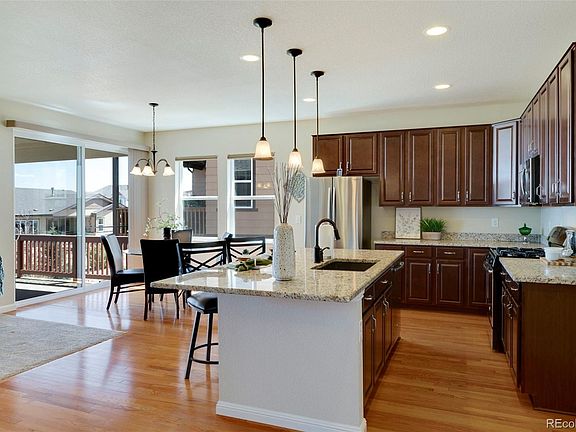 Welcome to the premier 55+ community of Skyestone! You’ll love the natural light that fills the great room through the large windows and features a gas fireplace for our cool evenings and Colorado winters. Your inner chef will love the kitchen that boasts 42” maple cabinets with a darker stain, gas range, slab granite counters and large island perfect for food prep as well as additional seating. Great for entertaining friends and family, the open floor plan leads out to an expansive L-shaped covered deck that has the ideal orientation for shady summer evenings as well as a great windscreen for the occasional windy days where you can still grill outside. The generous primary bedroom has a large walk in closet and private ensuite with extra wide split vanities and an oversized shower. The second bedroom on the main floor also has its own private attached, rarely used bathroom, that your guests will appreciate. This floor also hosts a bonus room for an office or craft space, formal dining room, powder guest bath, and oversized laundry room. Gently lived in, clean and well- maintained w/ neutral colors makes this home move-in ready. The unfinished walk-out basement is ready for you to make it your own and conveniently plumbed for an additional bathroom. Perfectly located just around the corner from the Skystone Lodge, you’ll be a short walk away from the outdoor pool, fitness center, and pickleball courts - plus so many fun activities planned to keep your social calendar fully booked! This active and welcoming community is surrounded by parks, open space, lakes, and trails. About 10 minutes' drive in any direction and you will be at local shopping, dining and just minutes to the Flatiron Crossing Mall. An easy commute to either Boulder or downtown Denver and is a fantastic location. Discover why this is the Colorado lifestyle home that you have always dreamed of! Offer on it today and be in in time for summer! Welcome to your new HOME!
