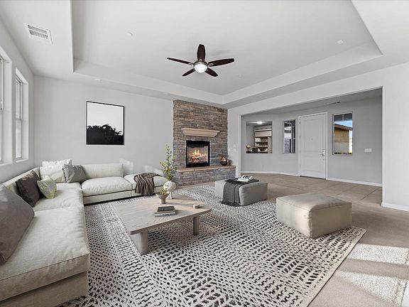Windermere at Seven Oaks! Lovely home located in a gated prime section of the community. Features spacious great room w/stone fireplace, hearth and mantel, high vaulted ceilings, formal dining, chef's dream kitchen that boasts lots of storage, stainless steel appliances, ample counter space, built-in desk and walk-in pantry, split wing plan with 4 spacious bedrooms, 3 full baths + office or library (you decide); the primary walk in closet is to die for, includes in door laundry, with approx 2754 sq/ft situated on a 9583 sq/ft lot, + 3 car garage. If you love entertaining or watching your fur babies and kiddos play in the back yard, you'll love the extended covered patio it provides enough shade to stay dry or cool! And can't forget the Tesla solar system (that helps reduce those high energy bills! The home is in the one of the most highly desirable school districts. You're not buying a home you're buying a Lifestyle! Conveniently close to shopping, eateries, and other genera