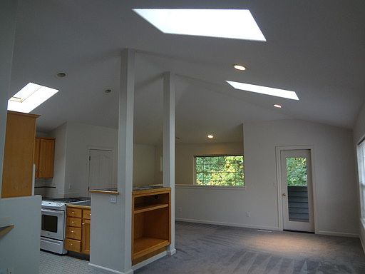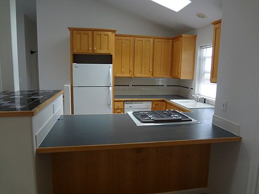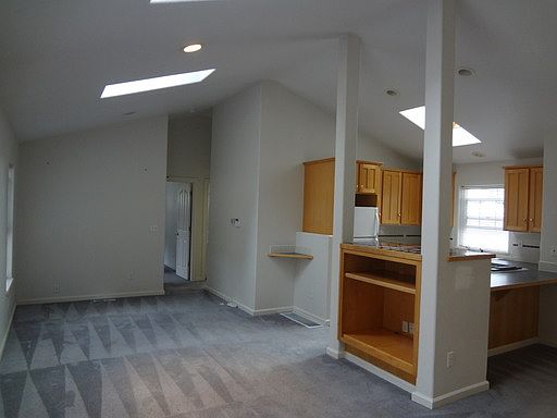 Newer rowhouseNewer two bedroom one bath townhouse style duplex. Upper unit. Vaulted ceilings and multiple skylights. Open floor plan with eating bar. Forest setting. Includes single car garage with opener. Maple cabinets throughout. Gas heat. We require you to drive by the property to view the exterior prior to scheduling a viewing appointment. There is a flyer posted in the front window with property information and the showing agents contact information. If you would like to schedule an appointment to view the interior, contact the number posted at the property.