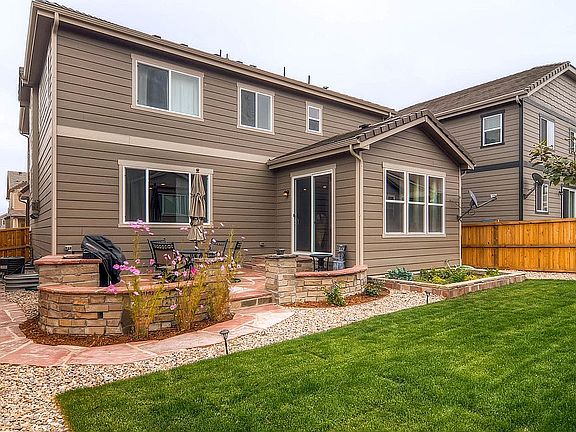 Dark HARDWOODS w/ open concept. Everything flows together for seamless living and effortless entertaining. From the moment you walk in you will feel at home passing the office with french doors, large room for entertaining, and then the immaculate gourmet kitchen boasting a HUGE center island with bar seating. Stunning custom cabinets and slab GRANITE throughout, stainless steel appliances, walk-in pantry, and gas range/hood. The upper level boasts an incredible master suite with 3 additional bedrooms & large open loft space. Laundry rm on the 2nd level for easy access. Incredible FLAG STONE upgraded outdoor living space with southern exposure. Built-in BBQ, raised garden beds with drip lines and sprinkler system. 1,320 sf basement w/ rough-in awaits your finishing touches. In the heart of Meridian International Business Center, Inverness & DTC Business Centers+easy access to Sky Ridge & Schwab Campuses. Countless places to dine & shop in Lone Tree & Park Meadows. You will love this home!