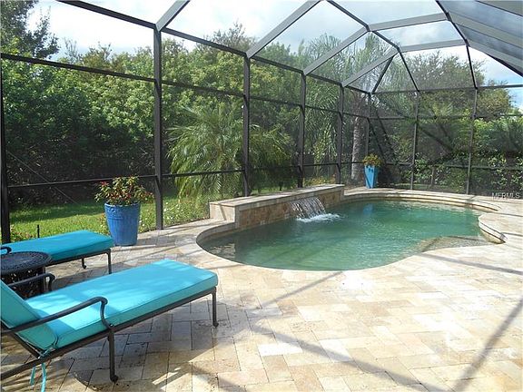 A MUST SEE! EXCELLENT PRICE! This gorgeous large executive home has 4 bedrooms, 4 baths, an office & Bonus room. It is situated on a corner homesite with lots of space inside and out in the highly desirable community of Greyhawk Landing. The split floor plan has an expansive bonus room on the second level with its own private full bath. First floor master suite has his and her walk-in closets, dual sinks, soaking tub and separate shower. Kitchen features granite countertops, stainless appliances, wood cabinets, walk-in pantry and breakfast bar. State-of-the-art fully equipped outdoor kitchen includes beautiful granite countertops, built in grill, hibachi grill, two refrigerators, an ice maker, and last but not least, a built in blender. Enjoy swimming and lounging by your gas & solar heated, self cleaning salt water pool. Lined with Travertine pavers and Marbled accents you will feel like you are at your own personal resort. This is outdoor living at its best. Home also features open floor plan, trey ceilings, crown molding, an office, separate laundry room, invisible dog fence and large three car garage. Greyhawk is a gated community with community center, fitness center, 2 pools, playground, soccer fields, baseball fields, tennis/pickle ball courts, and fishing lake. Conveniently located off I-75 and Rt. 64 this "A" rated school community is close to UTC Mall, Premier Sports Complex, downtown Sarasota and various beautiful sand beaches. This is Florida living at its best. Come home to Greyhawk Landing.