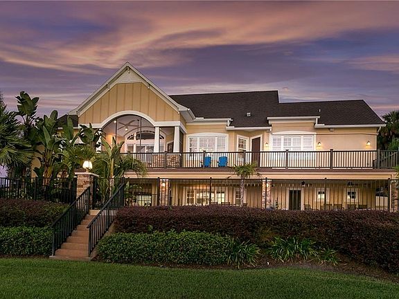 Enjoy lakefront living in this stunning 5 bedroom, 7 bath Hamptons-style estate. Custom designed for multi-time supercross and motocross champion, Chad Reed, this home features luxurious finishes including a full gym, beach entry salt water pool, boat ramp, floating dock, and boat lift. Tucked away at the end of a private, gated cul-de-sac on 3.12 acres, this home offers stunning views of Clear Lake. Inside, you'll walk into a soaring foyer and instantly be enamored by the open floor plan and lake views. Wainscoted ceilings and wood beams bring a coastal coziness to the main living area. The living room features a stone accented gas fireplace and is open to the chef's kitchen with a sprawling 11' long granite island and breakfast bar, Subzero refrigerator, 6-burner Wolf gas cooktop and walk-in pantry. The master wing features a 21x10 dream closet with a 7' long granite island and custom shelving. The master bath has his and hers vanities, a spa tub, and an oversized walk-in shower with dual rainfall shower heads. Each of the three guest bedrooms has its own private bath and walk-in closet. Downstairs, there's a family room and full bath. French doors lead to the full gym and a theatre room, currently used as the 5th bedroom. Other features of this home include a finished room over the garage, 3 tankless hot water heaters, generator, 5 a/c units, well irrigation, whole house water filtration, security system, intercom system, custom crafted wood trim, and an optional membership to golf course amenities.