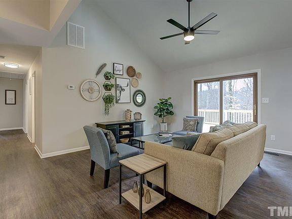Stunning N Raleigh remodel on 1.3 acre, cul-de-sac lot! All the charm of it's 1974 build, with modern 2020 finishes! Open to the dining & living room, the kitchen features white cabinets, textured granite counters, tile backsplash & wine/coffee bar with beverage cooler. New LVP flooring throughout living spaces & new carpet in all bedrooms. Master bedroom features his & hers closets, & gorgeous bath. Lower-level, finished flex room w/ closet can function as a bedroom. Huge deck overlooks private backyard.