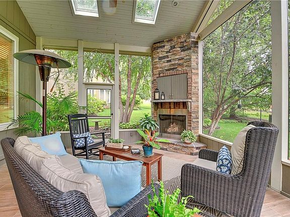 Step outside to a luxurious large screened-in porch featuring tile floors and a cozy fireplace—an extension of your living space that feels like a second family room. Just beyond, a beautiful patio overlooks the lush, landscaped yard bursting with colorful flowers throughout the summer months.