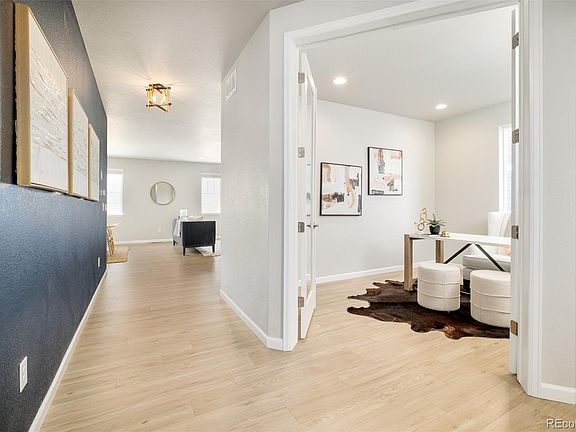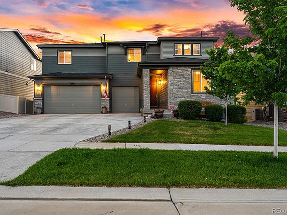 Welcome to your spacious, designer home in the coveted Anthology community! Thoughtfully appointed, highlights of this residence include a grand open layout, a rare walkout basement, and and expansive decks and patio overlooking open space behind the home. Upon entering, you'll immediately recognize that this is no cookie-cutter home. Take in the beautiful flooring, gallery walls, and upgraded, designer lighting illuminating the already sun-drenched space. Custom built ins flank the fireplace, displaying your treasures and photos, and when winter arrives, provide a spot that will keep you cozy and warm. Your chef's kitchen is equipped with an enormous island and timeless shaker cabinetry, setting the stage for wonderful meals and gatherings, all prepared from your enormous walk in pantry. Outside, you'll find space to entertain and soak in the views all summer long. This west facing backyard also has an oversized patio, professional landscaping, and a perfect place to gather around a fire. The main level also includes a bedroom that serves as a bonus space and provides comfortable accommodations for your overnight guests, as well as an additional office with french doors for all your work from home needs. Heading upstairs, you will find a large flex space for a pool table, home gym, or a secondary office. The spacious, primary suite offers a luxurious respite at the end of the day. Generous closets abound in all bedrooms. The oversized three car garage has room for all your Colorado toys and extra storage needs. Just beyond your front door, you'll also be able to enjoy everything the Anthology neighborhood has to offer, including parks, trails, a sparkling pool, and clubhouse. Hurry & See today or your dream house!