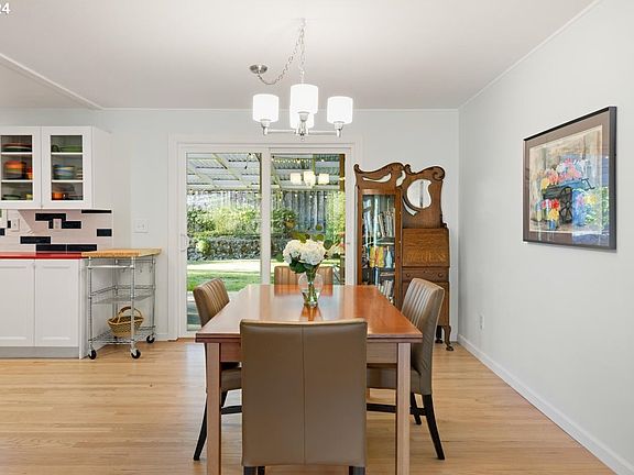 Spin some vinyl in your new light-filled Living Room and Discover the joy of one-level living in this delightful, open flow, energy-efficient home, perfect for easy living and indoor/outdoor enjoyment. The light-filled interior boasts a vibrant and fun decor, creating a welcoming atmosphere. Three bedrooms and two remodeled bathrooms with walk-in showers. Open concept living area with sliding door to covered patio designed for effortless flow between indoor and outdoor spaces. Oak Hardwoods throughout. Brick, wood-burning Mid-Century style fireplace. Spacious updated kitchen with all New stainless-steel appliances, built-in pantry. Laundry room/Mudroom with work space & storage. New windows, New window coverings (open up or down), New HVAC furnace and AC system 2021, New insulation in attic & crawl space, New plumbing, New Roof, New 200 AMP Electric Panel, refinished ceilings and floors. Outside you'll experience a gardener's delight. Enjoy the bounty of your own planter boxes filled with blueberries, raspberries, grapes, vegetables, and wildflowers. Ample Parking for small RV, boat, etc. Host gatherings on the covered patio or around the cozy fire pit and make use of the spacious shed for all your storage needs. Incredible yard with covered patio, 10' x 10' shed, raised beds, beautiful terraces, fire pit and more! Located in the sought-after Terra Linda /Cedar Mill neighborhood, this property offers an array of appealing features and updates plus the convenience of parks, farmer's markets, cafes, shopping, gym, grocery stores and more!